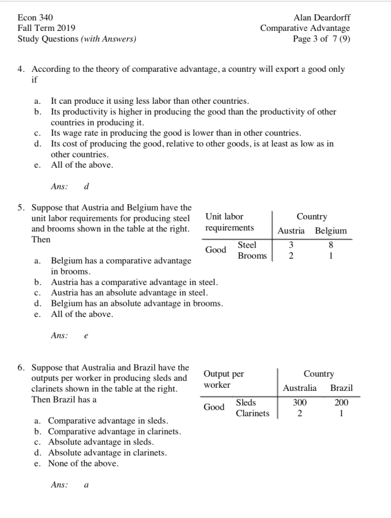 Below is a screenshot of a test on Comparative Advantage from the University of Michigan from 2019. I have also included the link to the full test – and don’t worry, the answers are included! Why am I posting about comparative advantage – because it is such an exciting topic!
