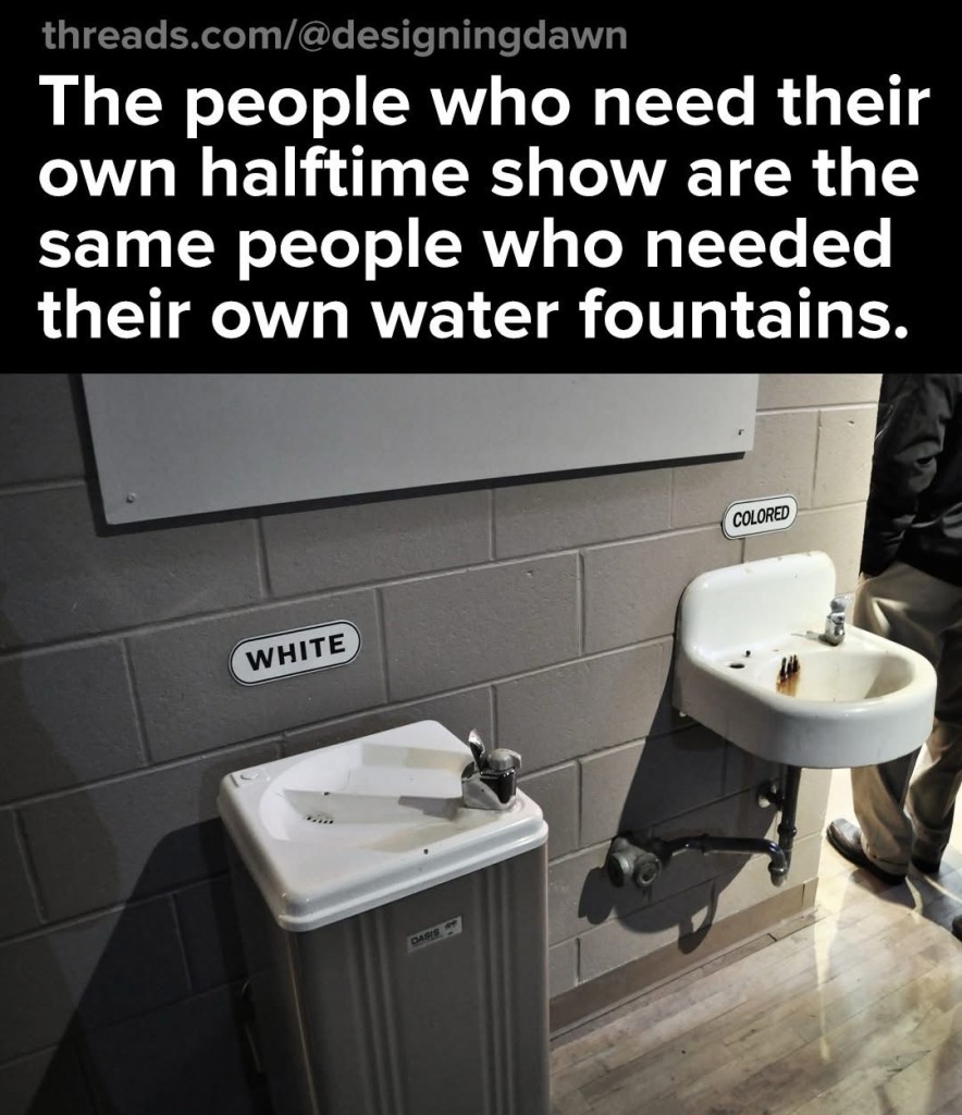 I believe the Turning Point halftime show is a protest too. When I look at the genesis of the event, I see it as a protest against a decision to take the biggest American sporting event and share it with people who are “different.” It’s different music from what I grew up with, in a different language. I won’t understand what’s being said or what’s happening in the performance (sort of like how I felt watching the Opening Ceremony last night).